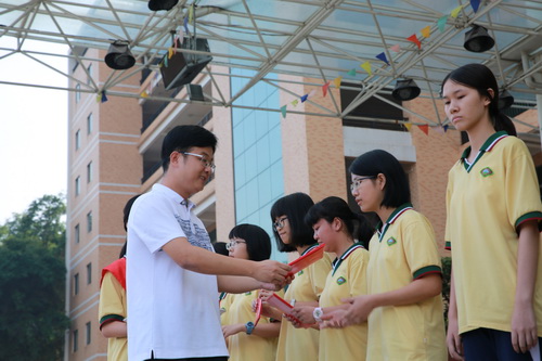 新学年一开学,我校师生就在各项大赛上崭露头角。2017年9月11日在升旗上,我校对获得奖项的师生举行隆重的颁奖典礼。